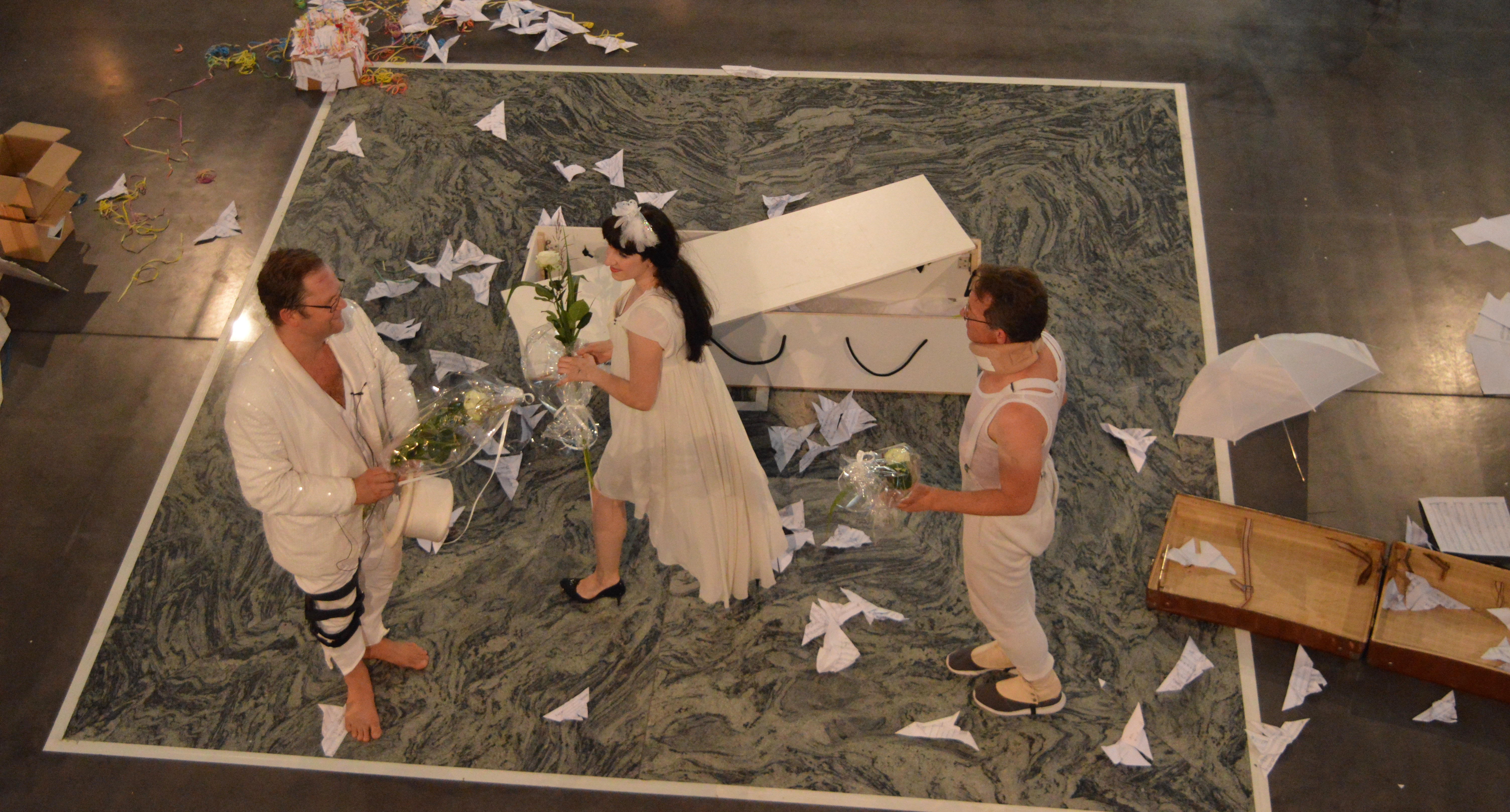 È così che ho visto il libro per la prima volta. Il libretto è un collage dagli avanzi verbali che Prolitheus ha lasciato sulle pagine del libro, che ho messo insieme. Ho raccolto questi avanzi in 10 cartelle tematiche e poi ho riassemblato tutto. Il libretto è quindi un collage di un décollage. Ho limitato le mie aggiunte al testo. È così che è nata la trama, è così che è stato composto il testo.