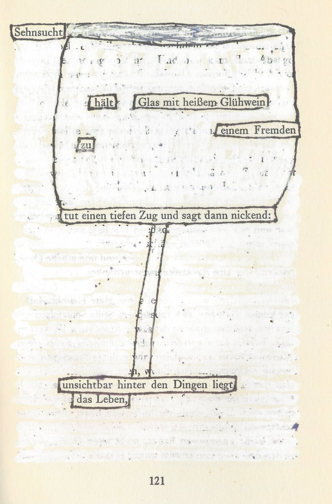 Una sera, tornando a casa, Prolitheus Pfenninger trova un libro sul sedile del treno. È il peggior libro in cui si sia mai imbattuto. Mentre è ancora sul treno, comincia a migliorarlo con un pennarello e Tippex: cancella interi blocchi di testo e lascia solo singole parole o parti di frasi. Nei 20 mesi successivi, affina la sua tecnica di décollage. Invece del disgusto, pone la poesia come sovrastruttura mentale. Cioè, ogni pagina individualmente diventa un oggetto di studio a sé stante. Il testo originale offre varie, ma limitate possibilità a causa della scelta delle parole. Così lavora su una pagina a volte per giorni fino a quando non ha un volto completamente nuovo; sembrano dei bastardi tra la pittura costruttiva e l'arbitrio totale.